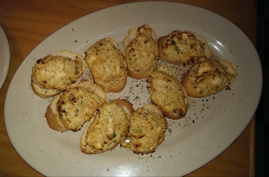 For my appetizer, I ordered the Crab Dip Bruschetta, small pieces of toasted French bread topped with a cheese/crab dip. With a healthy dose of Old Bay seasoned crab, I found it a nice twist on the classic bruschetta. As I got there late afternoon, I was not hungry enough to eat a full entrée. So I limited myself to the sandwich menu. As I have had a lot of barbecue recently, I skipped all the pork items and settled on the prime rib sub. The sub is served with toppings of your choice, and I decided on pickles and sautéed onions. The result was juicy and delicious, although a bit salty. The portion size was very generous and I could have made two meals out of it. I substituted a garden salad instead of the normal chips side (the chips came out anyway). The salad was quite well done, being full of fresh vegetables.