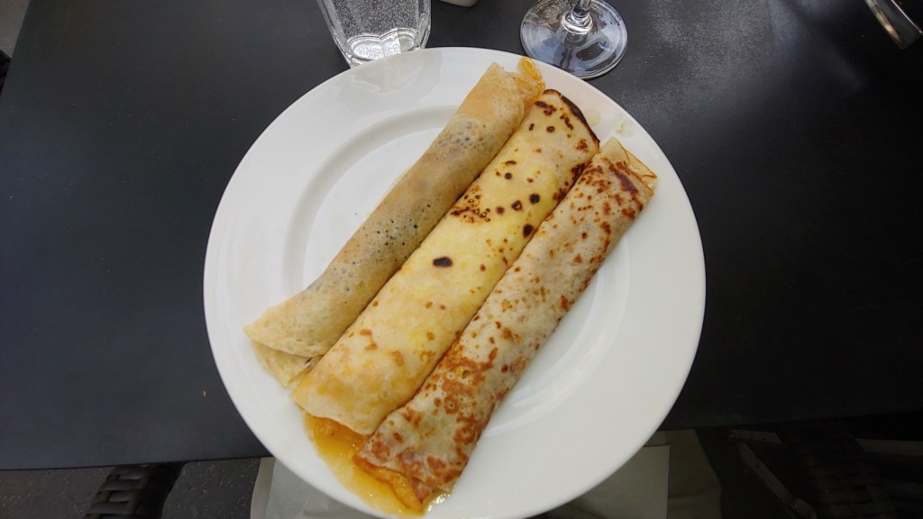 At the Batthyány tér, I had a savory Hungarian crepe. This was billed as vegetarian, but I’m not sure it was. The crepe was filled with a meat like substance (maybe beans?) in a thin goulash style sauce. It was mediocre. I wished I went with one of the other choices.