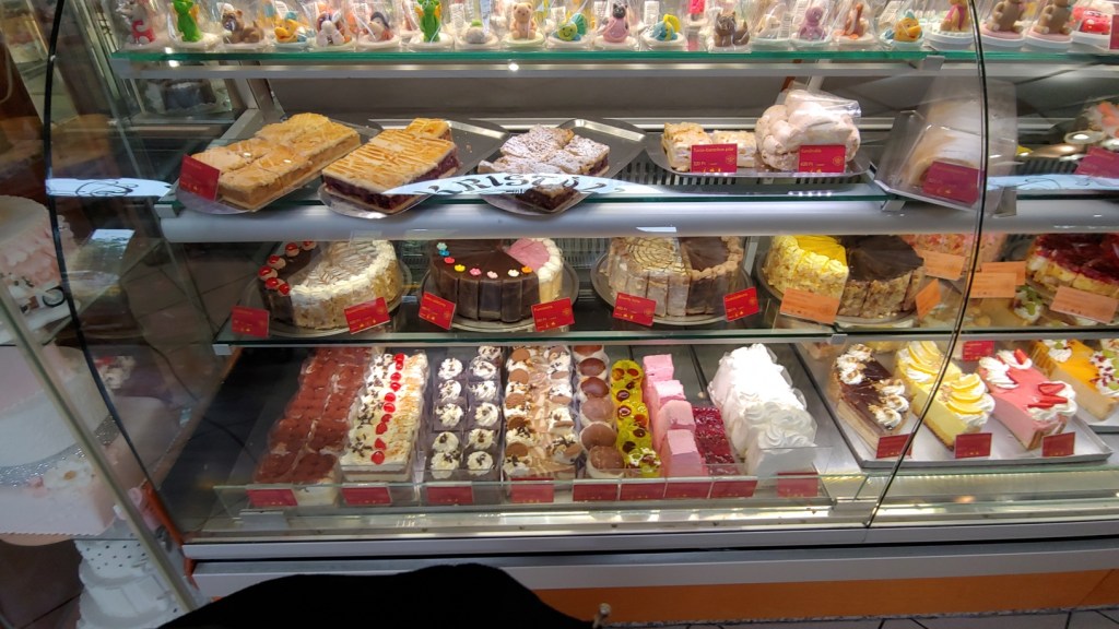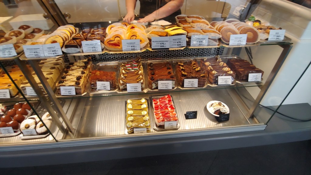 Our first stop in Pécs was Jókai Cukrászda. It is located in the center of town, at the end of Jókai street and around the corner from the famed Széchenyi square , this confectionary had come highly recommended. Like the other confectionaires we had visited, this place has a dizzying array of desserts available.