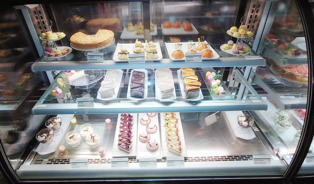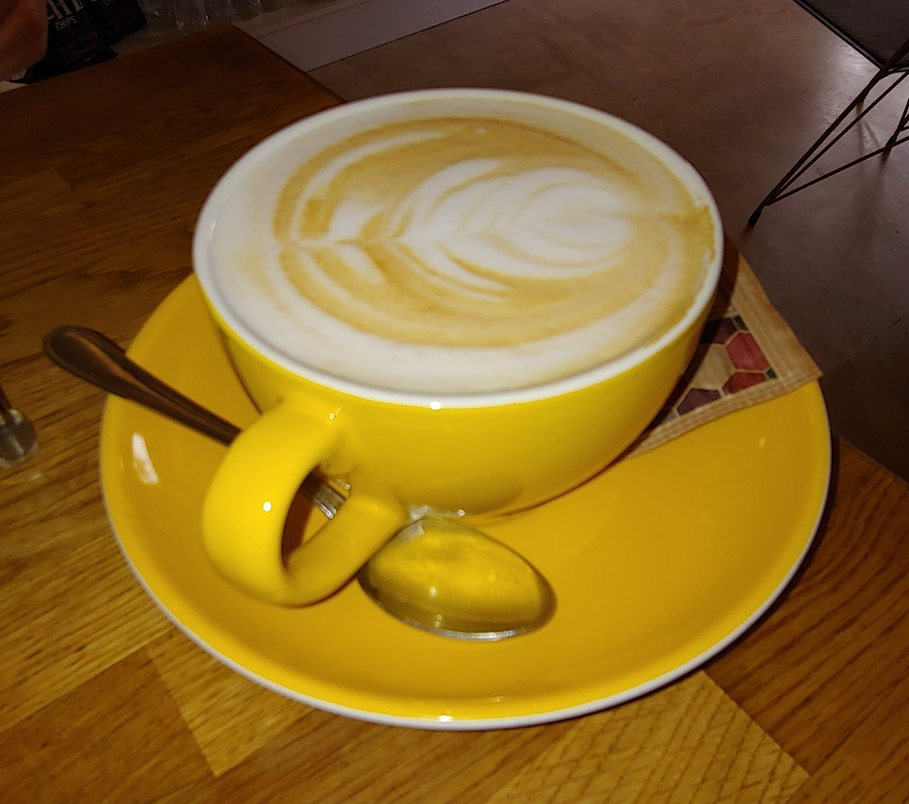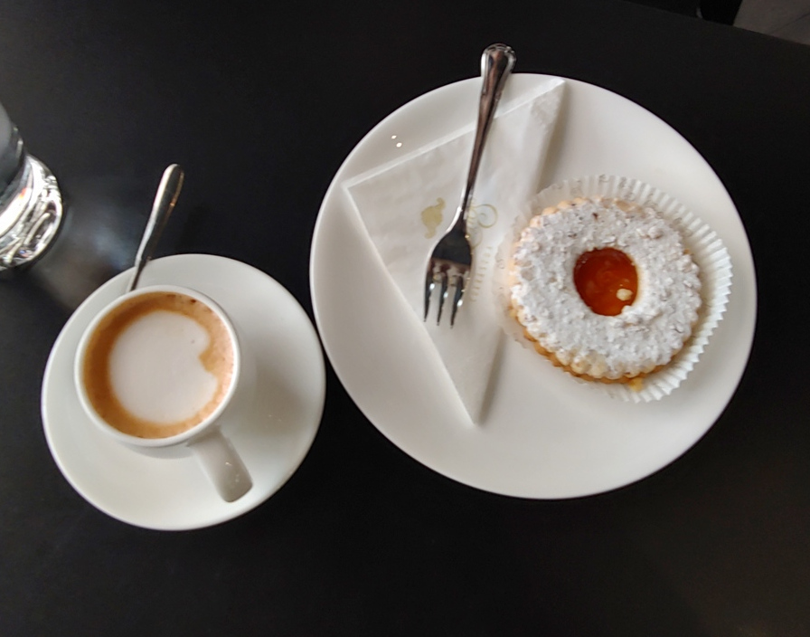 The cafe has a wide variety of desserts to choose from. My friend had an expresso and a sort bread cookie. I had a marzipan ball covered with chocolate powder.