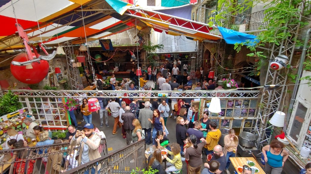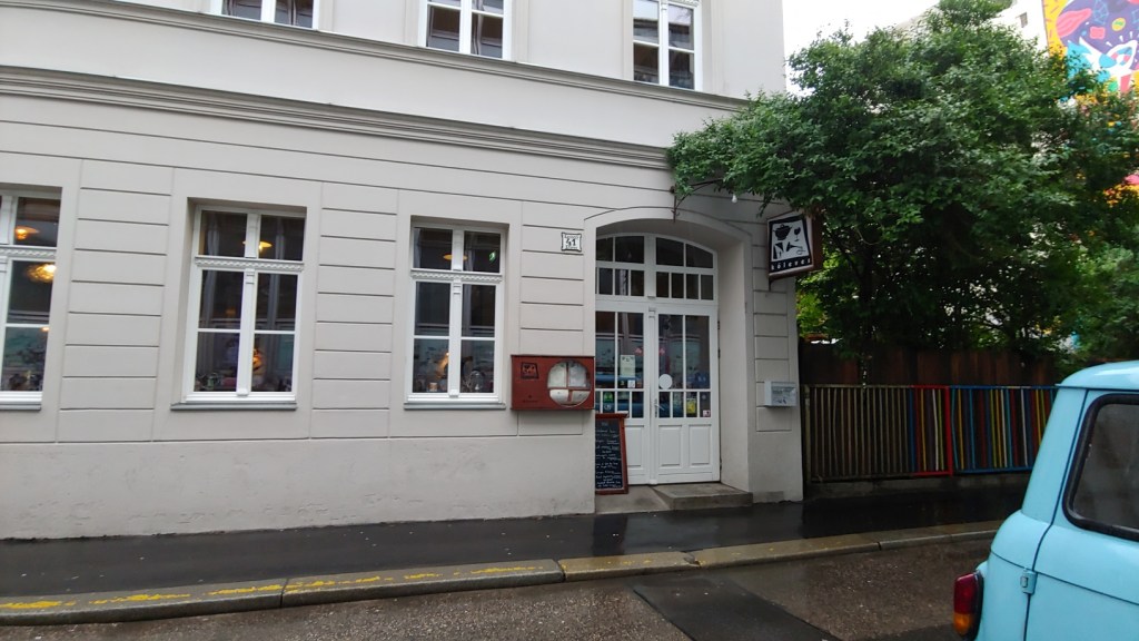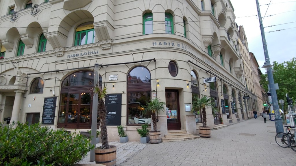 Csinos Presszó is not in Budapest, but in the Hungarian city of Pécs. But it is a Ruin Pub, a very good one, so I am including it here. Located on a Antal utca not too far from the heart of downtown, it has a memorable mural commemorating the 1956 uprising on the outside. On the inside, it has large area with outdoor seating, in the classic Ruin Pub style. The selection on the menu is small, but the food is quite good. I had the ham wrap (which was a bit of a surprise, as my hosts did not know the English translation and merely said “pork behind”). My friend wanted something light and so ordered a vegetarian hamburger. What he got was a block of cheese, grilled, on a bun. That tells you all you need to know about Hungarian cuisine. It is not light. Overall, with good food and fantastic ambience, Csinos is the perfect spot for a relaxing meal.