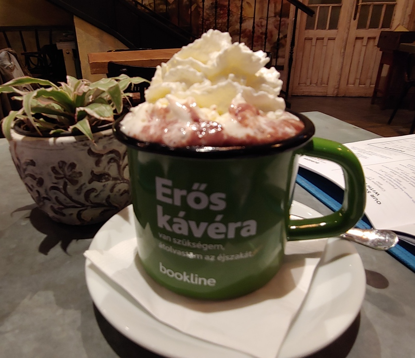 I went with their signature drink, the Ruszworm caffee: coffee with hot chocolate, whipped cream, and a shot of cherry liquor. After a day of hiking in the hills around both the Citadel and Buda castle, this was just what I needed. I also got a cherry strudel, one of the signature desserts of Hungary.