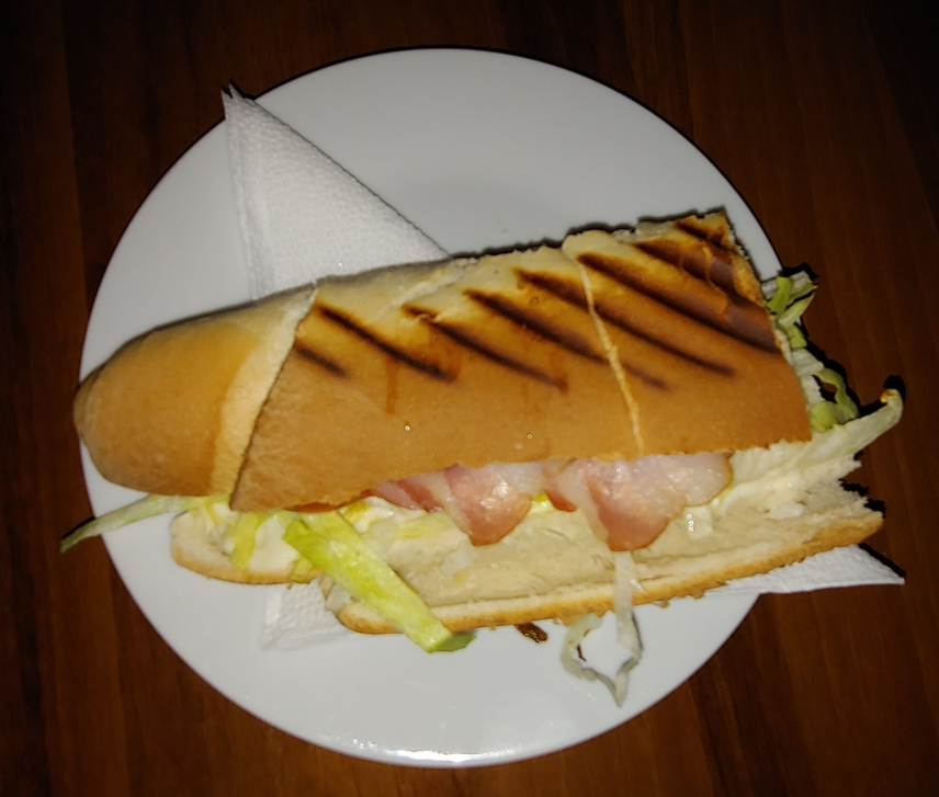 Trapez Kalfikócsma, located on Imre utca behind the Central Market, is outside the Jewish quarter so I’m not sure it qualifies as a ruin pub. But it is a great place to get drinks and have some pub food in a relaxed atmosphere. I had a burger which, in the Hungarian style, was gigantic. It was also juicy and delicious. My friend had the BLT which he quite enjoyed.