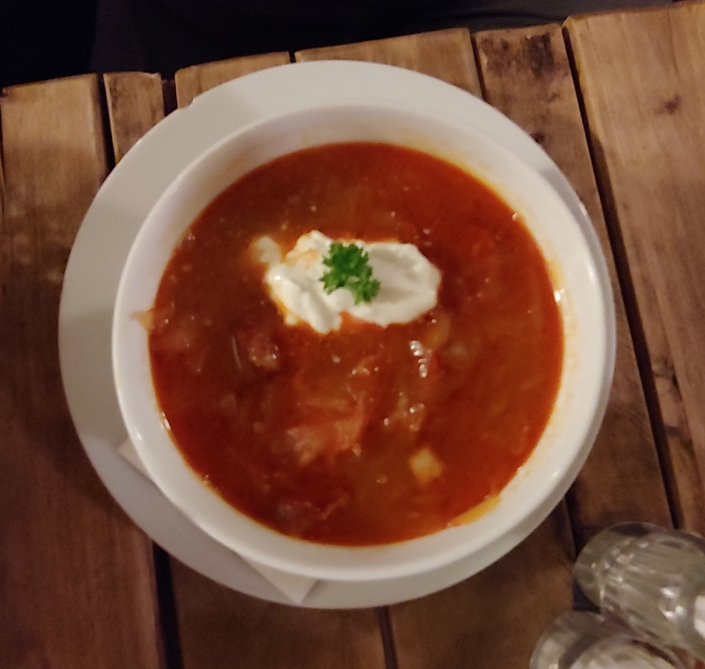 Köleves Vendeglö is a casual restaurant located in the Jewish Quarter on Kazinczy utca. The name has an interesting translation. It means “Stone Soup restaurant” I was in the area after touring the Grand Synagogue, and sought this out after reading the 2foodtrippers description. This also enabled me to walk around the quarter, which is well worth doing.