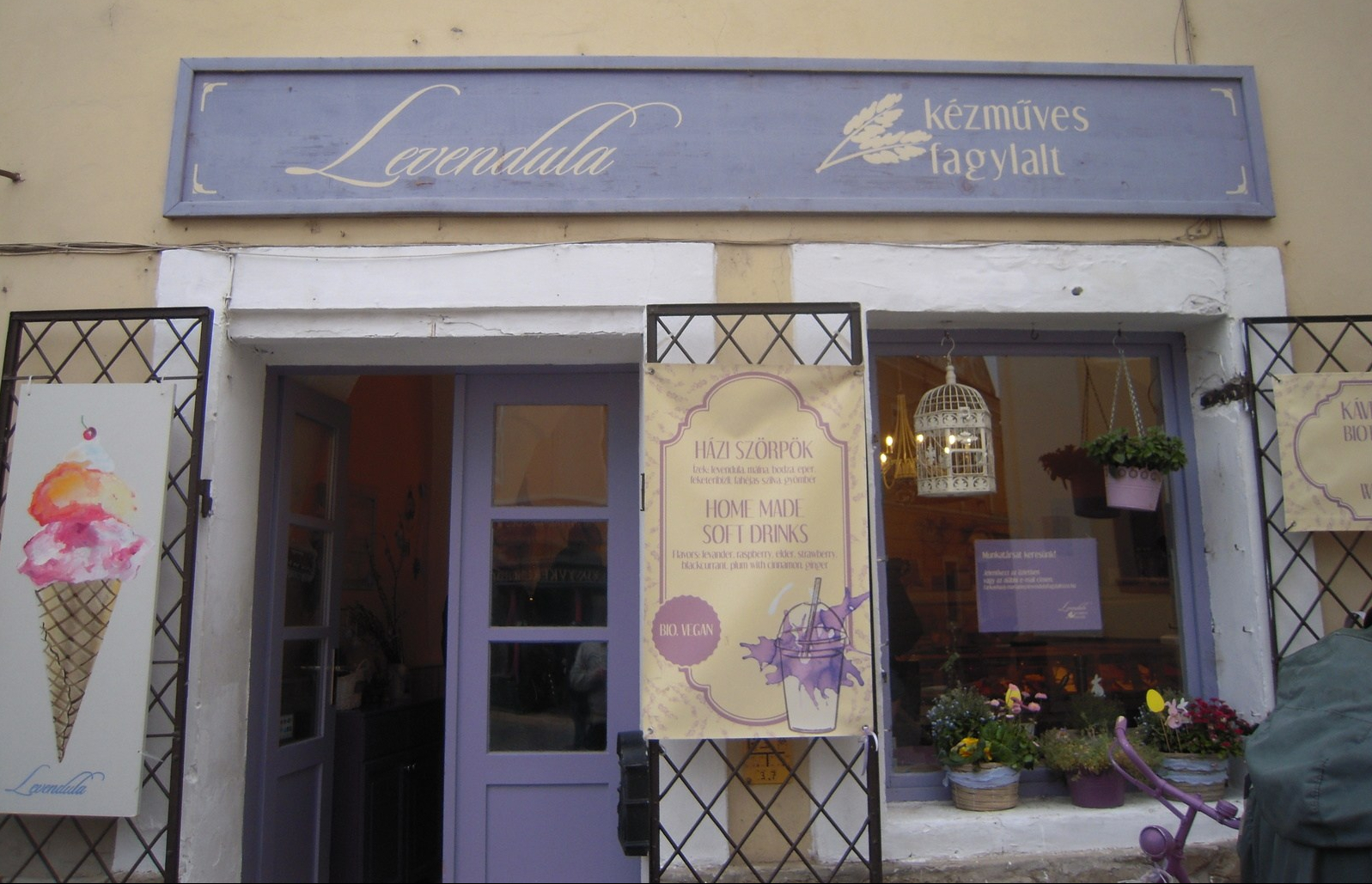 We were in town for a beer festival and did not eat a meal there. (In fact, it was on our way back from Szentendre that we stopped in Szentlélek Tér and ate at Kéhli Vendéglő). We did however stop at the Levendula (Lavender) ice cream shop, which is my friend’s favorite place in Szentendre. I did see other Levendula’s in Hungary so I think it is a chain. They have many varieties of ice cream available, but I had to get the lavender. It is as good as my friend said it is.