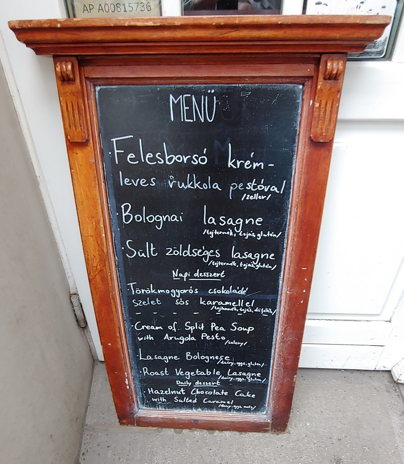 There are a couple of things to be aware of when dining in Hungary. First, they often have a special lunch menu. It won’t be on the printed menu, but is often written on a chalk board. It will be labelled either “Menu” or “Napi Menu.” This is a reduced selection menu for a two course meal at discount prices. The price is typically 1500 Forints (about $5 US), making for a great bargain. Be sure to be on the lookout for that.