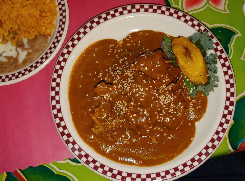The sauce is served over your choice of meat. I picked chicken. When it came out, I got a heaping mound of chicken smothered with the Mole sauce. The chicken was moist, but unseasoned. All the flavor of the dish came from the Mole sauce. Oozing with flavor, the sauce could have been served with anything and it would be delicious. My friend had one of the specials of the day: an enchilada and tamale combo, with the latter covered with Mole sauce. He loves tamales and was super excited to mix it with mole sauce. My friend doesn’t remember which sauce he ordered, as he changes them up every visit (and has never been disappointed). Describing the meal as flavorful, he found it perfect after a morning of walking around town.
