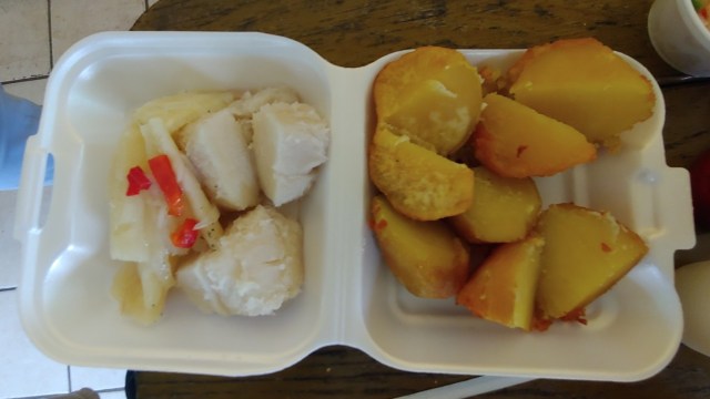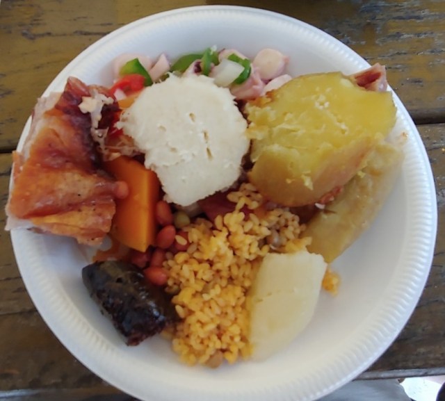 We ordered a little bit of everything from the menu: ribs, roasted pork, chicken, roasted sweet potatoes, beans and rice, white yams called ñame, an octopus/ shrimp salad, and some plantains. All were quite delicious, but if I had to pick a favorite it would be the ñame. I’ve had potatoes before, but nothing quite like that.