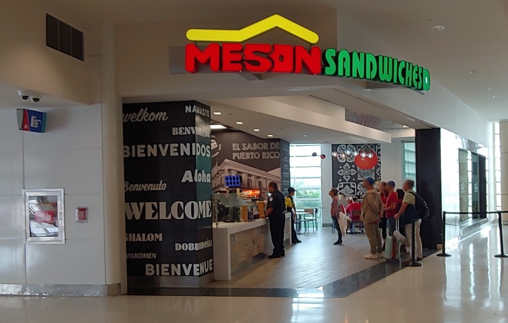 But you don’t have to leave the airport in order to get good food. On the second floor of San Juan’s Luis Muñoz Marín International Airport , at the end of the terminal where the check-in counters are, is a local restaurant called Meson Sandwiches. The name has significance. It implies a home town dining hall ; the kind of place working people would stop in for comfort food.