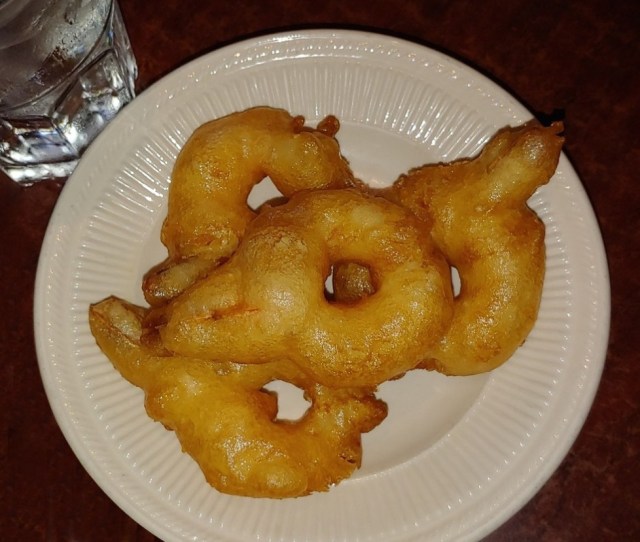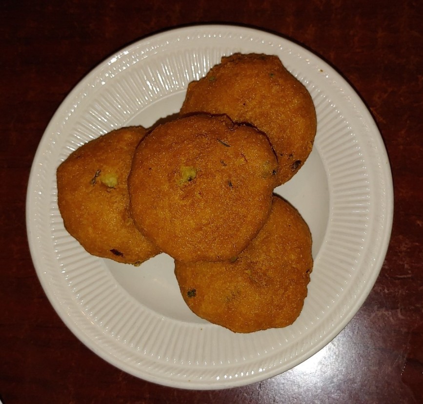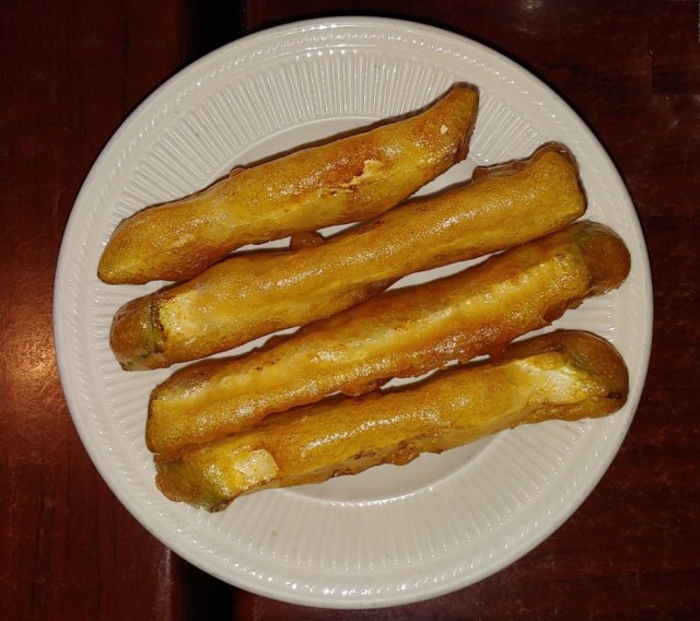 Mandalay has a nice assortment of appetizers, each one of them fried. Over the years, we’ve tried them all: gram fritters, eggplant, squash, spring rolls, shrimp, and samosas. My favorite is the gram fritters, fried fritters from ground yellow split peas and spices. I get them practically every time I go. I recommend all of the appetizers, except possibly for the samosas (stuffed pastry filled with vegetables). I prefer the Indian variety.