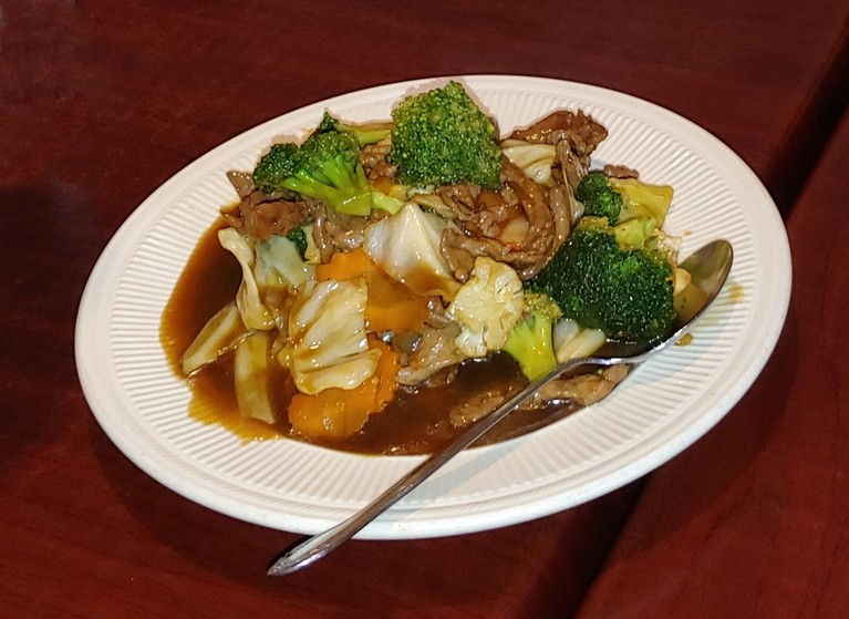 Another in our group gets either the chicken and broccoli (chicken #2) or the beef and broccoli (beef #7) for his family. Both are stir fries with a Burmese brown sauce. They are good meals for kids.