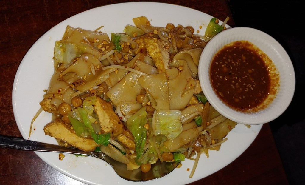 The Kabat Gyaw is a mix of beef, peppers and onions. It shows the versatility of Burmese cooking, as it’s like nothing else on the menu. Yet, absolutely delicious. As for the noodles, you can get them either thick and wide or thin, rice or egg noodle, and with the meat of your choice. Noodle #4 is a thin noodle dish and was ordered with shrimp, while #5 is thick noodles with tofu.