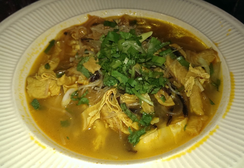 My vegetatian friend’s go to dish is vegetable #6 (Nyat KaukSwe Gyaw), a mix of vegetables, noodles, and tofu. A different vegetarian friend, on one occasion, had Ohnno hin (I don’t recall the number), which is tofu and vegetables in a coconut curry sauce. He gave it a favorable review. It certainly looks delicious.