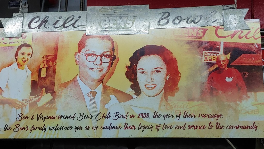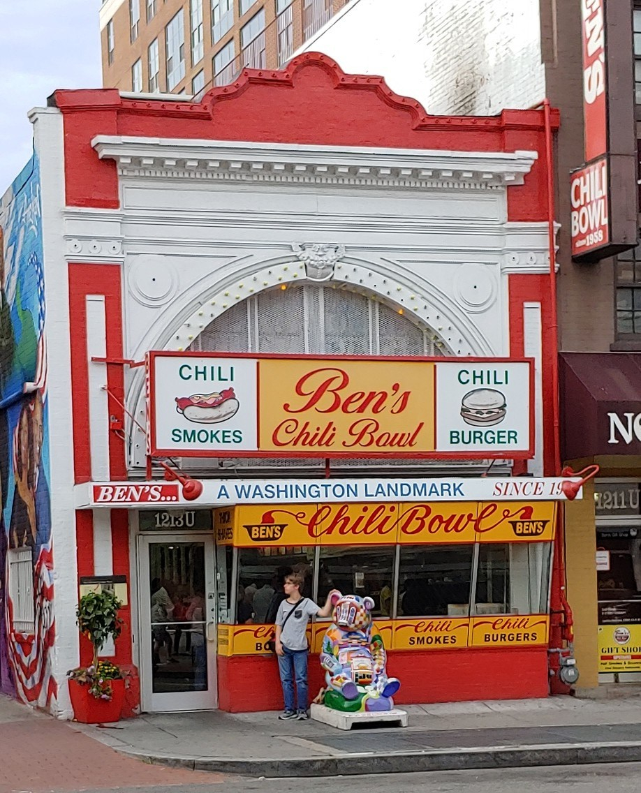 During the mid-20th century, U Street was the center of Black culture in DC, so much so that it was given the nickname “Black Broadway”. Dozens of Jazz clubs and two renowned theaters, the Lincoln and now historic Howard Theatre, made it the heart of Black entertainment. Duke Ellington, one of the world’s most pivotal Jazz musicians, was born there. Other famous Jazz singers, including Billie Holiday and Louis Armstrong, also performed there. Ben’s has been a pillar of the community and the witness to many historic events. It provided food to demonstrators during Martin Luthor King’s March on Washington. More recently, protesters of the George Floyd killing gathered at the corner right next to Ben’s. During the riots of 1968 it was the only place allowed to remain open during the curfew, serving food to both protesters and police. U Street suffered a decline after those riots, but Ben’s Chili Bowl survived and eventually prospered. The area is now an upscale neighborhood and has a wide array of restaurants and shops.