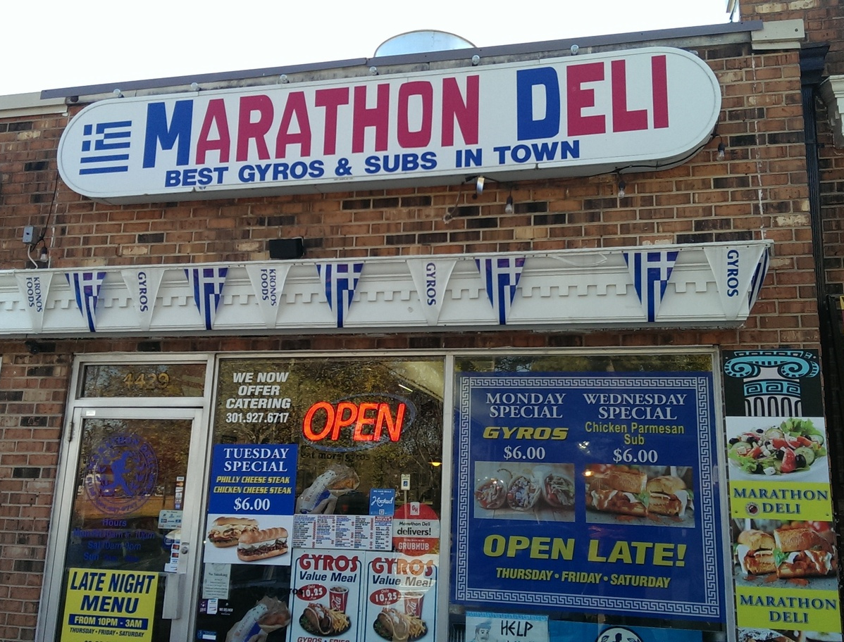 Marathon Deli is an old favorite, having been in College Park for close to 50 years. Just south of the University of Maryland, it recently moved just around to the corner to a eye catching new location directly on Route 1.