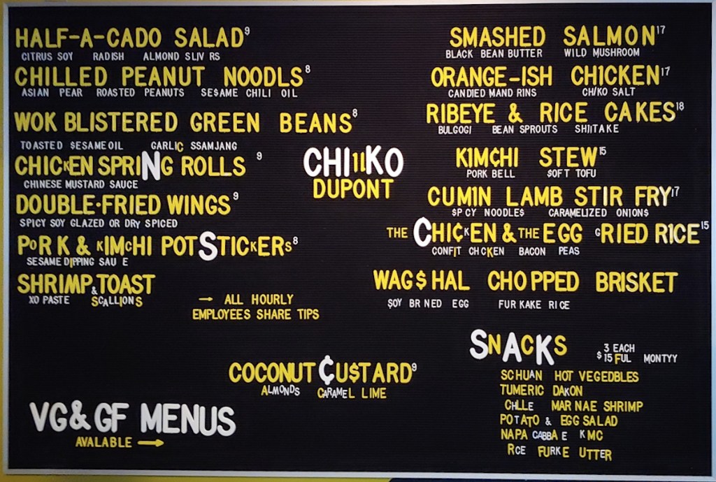 There’s a small restaurant chain in Washington DC that specializes in a fusion of Chinese and Korean cuisine. I was skeptical and first, but I quickly discovered that Chefs Danny Lee and Scott Drewno have created a unique blend of flavors with amazing results. As a consequence, CHIKO has quickly become one of my favorite restaurants. Their first location is on Capitol Hill, but I have only been to the one in DuPont Circle. They recently opened a third location in Bethesda, MD.