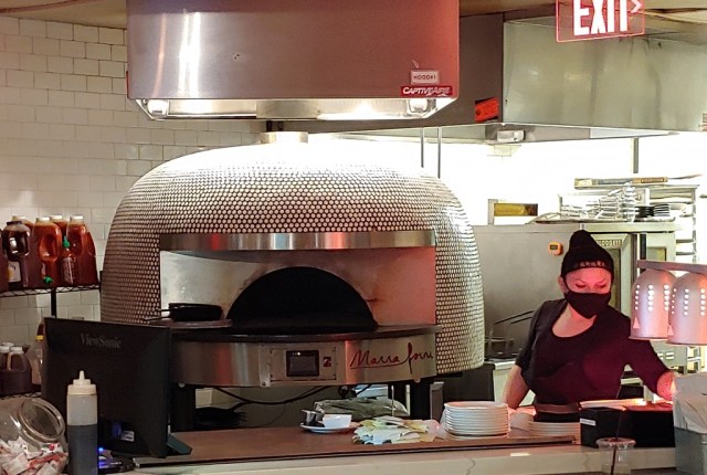 Halfsmoke has a casual ambience, somewhat akin to that of a sports bar. Like a sports bar, they have TV screens on all the wall, but playing music and videos instead of sports. There is a small amount of ambient noise, but not so loud that you cannot have a conversation. Halfsmoke also has an open kitchen, so you can see the cooks preparing your meal. I found the brick oven especially eye catching.