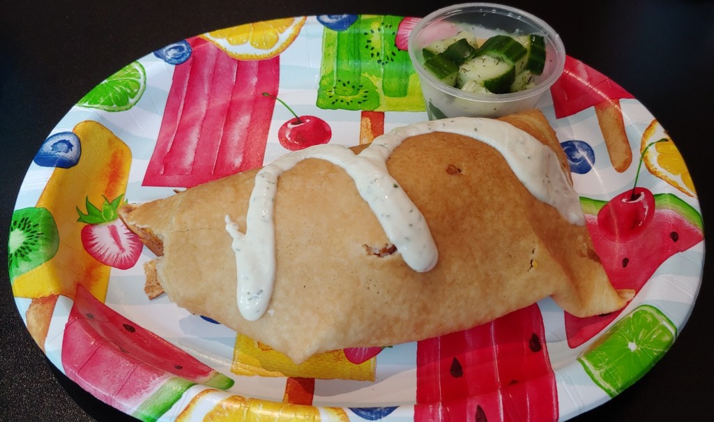 On the recommendation of the server, I ordered a BLT turkey and cheese crepe. This was a hefty crepe; more like a burrito with a crepe wrapping. But it was good. Filled with lettuce and big chunks of turkey, I got my money’s worth.