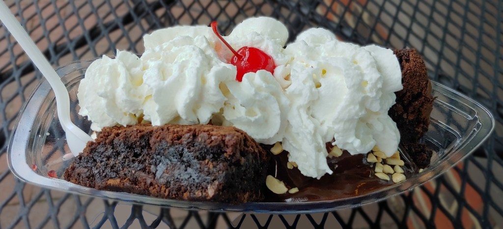 I’ve mainly gone there for ice cream there. I’ve gotten a cone on my first trip and a brownie sundae. Both were very good. The sundae contained a generous amount of a very fudge-like brownie, topped with vanilla ice cream and whipped cream. It was high quality ice cream, although the whipped cream tasted like it came from a can. Still, I recommend it. Old World has a couple dozen flavors to choose from. They have standards such as vanilla and chocolate; classics flavors like Butter Pecan, Coffee, Cookie Dough, and Moose Tracks ; and seasonal flavors such as Peach, Strawberry, and Raspberry Truffle.