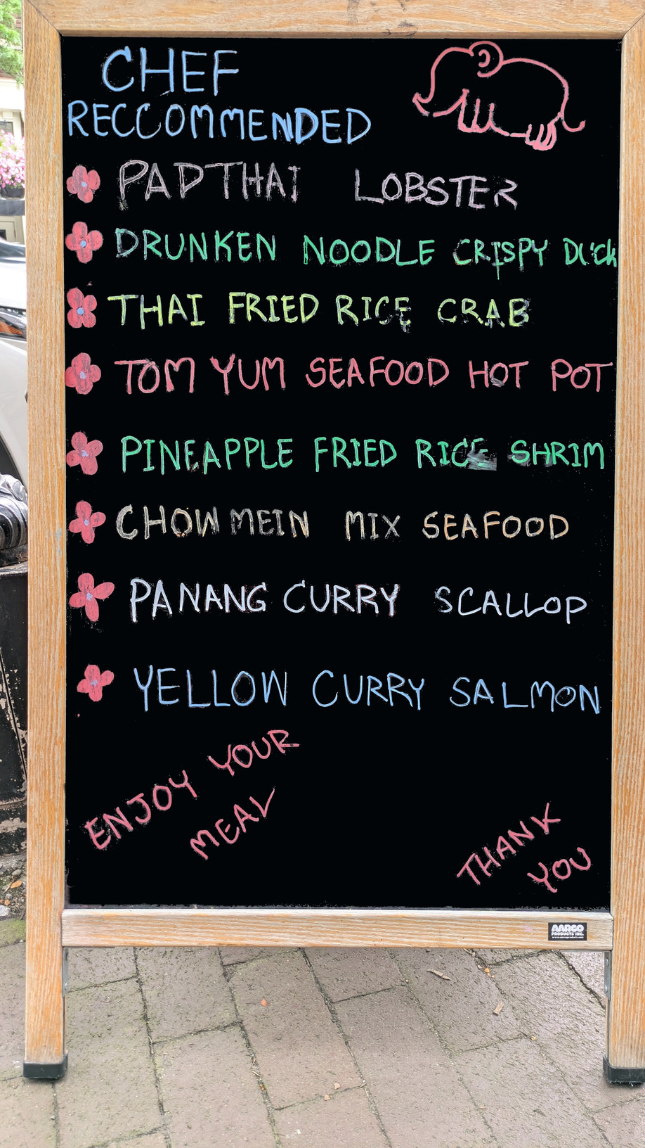 Nine Elephants has a typical Thai menu, with curries (Panang, Yellow, Green, Massaman), noodle dishes (Pad Thai, Drunken Noodle), stir fries (Thai Basil, Cashew Nut, etc..), and fried rice (Pineapple, Thai). The noodle dishes include one I had not seen before, Pad See We, which is stir fried rice noodles. All of their menu options come with a choice of protein. Their signature dishes all involve fried seafood, most notably a Fried Whole Fish. They also have several Cajun spiced dishes.