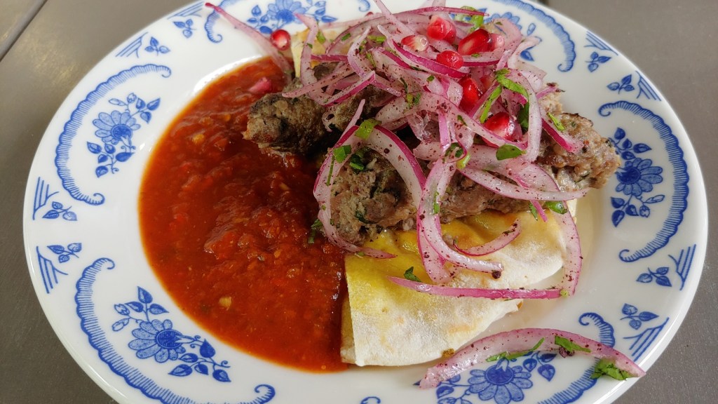 Other sections of the menu include makaldan (from the grill) and baghidan (from the garden). The grill section has several different kebabs. I had a ground pork one call lyulya. Mildly seasoned with Georgian spices and served with a mild tomato sauce, it has the perfect balance of flavors. It seems all their dishes are like that.