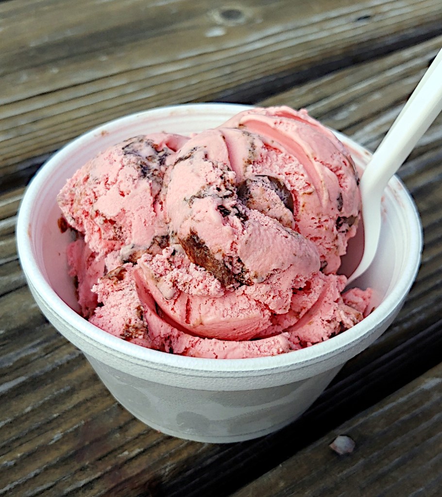 Between Perry’s and Penn Sate Creamery, Straw Hat has dozens of flavors to choose from. Notable Perry’s flavors include Deep Sea Treasure (caramel ice cream with caramel sea salt truffles), Brownie Batter, Cookie Butter, and Let’s Dough Buffalo (a reference to the sports teams of nearby Buffalo whose rallying cry is “Let’s Go Buffalo!”). Notable Penn State flavors include Death by Chocolate, Scholar’s Chip (vanilla with chocolate chips), WPSU Coffee Break (coffee ice cream with chocolate chips), and Happy Happy Joy Joy (coconut ice cream, butter roasted almonds, and chocolate chip).