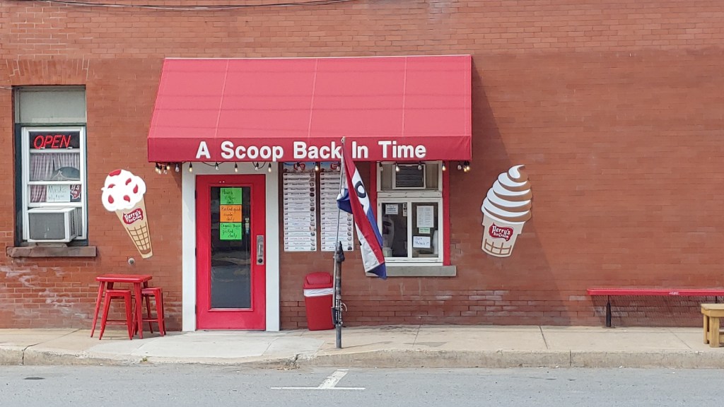 Mansfield is a borough in north-central Pennsylvania, just south of the New York border on Route 15. I occasionally stop in Mansfield to get meat at a local butcher. On my last trip there, right off their main street, I noticed A Scoop Back in Time, the local ice cream parlor. Of course I stopped in for some ice cream.
