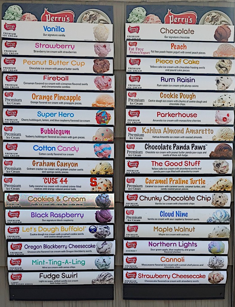 They don’t serve their own ice cream. They serve Perry’s. As I said above, Perry’s is a New York regional ice cream maker. It was started in 1918 by H. Morton Perry in Akron New York when he bought a dairy. Originally it was a home delivery business, but in 1932 the company started making ice cream for the local high school using an old family recipe. The company grew from there and they are now one of the largest ice cream producers in New York State. It is still owned and operated by the Perry family.