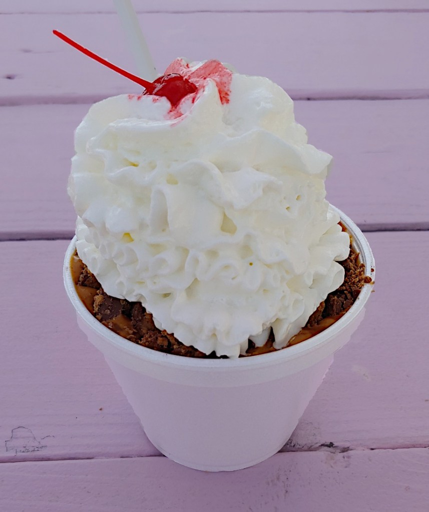 Other items on the menu include milkshakes, sundaes, and floats. They also have something called “White outs”, which I think is vanilla ice cream mixed with candy of your choice: brownie, snickers, peanut butter cups, Oreoes, chocolate covered cherries, etc…