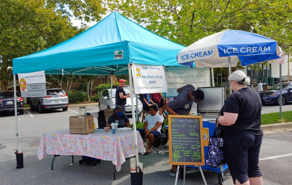 Ice cream parlors and creameries are not the only places you can get good ice cream. Vendors also show up at farmers market. I’ve seen Simple Pleasures at several, but only recently have gotten around to trying their ice cream. The owner said that they used to have a store front in Bowie, MD where they made the ice cream. But they have grown and now use a industrial sized facility in Washington DC. I got the impression the store front no longer exists, but you can find them at farmers markets and at special events.