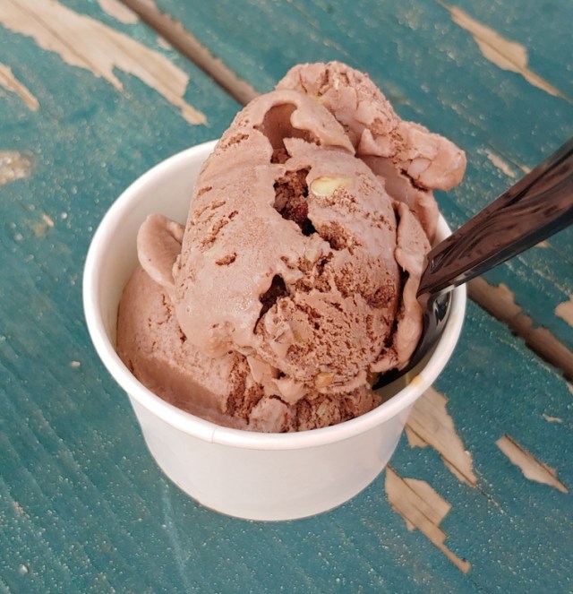 My companion ordered the Monocacy Mud, a dark chocolate flavored ice cream with salted caramel and pecans. The name is a reference to the nearby Monocacy River, but that was not the direct inspiration for the flavor.