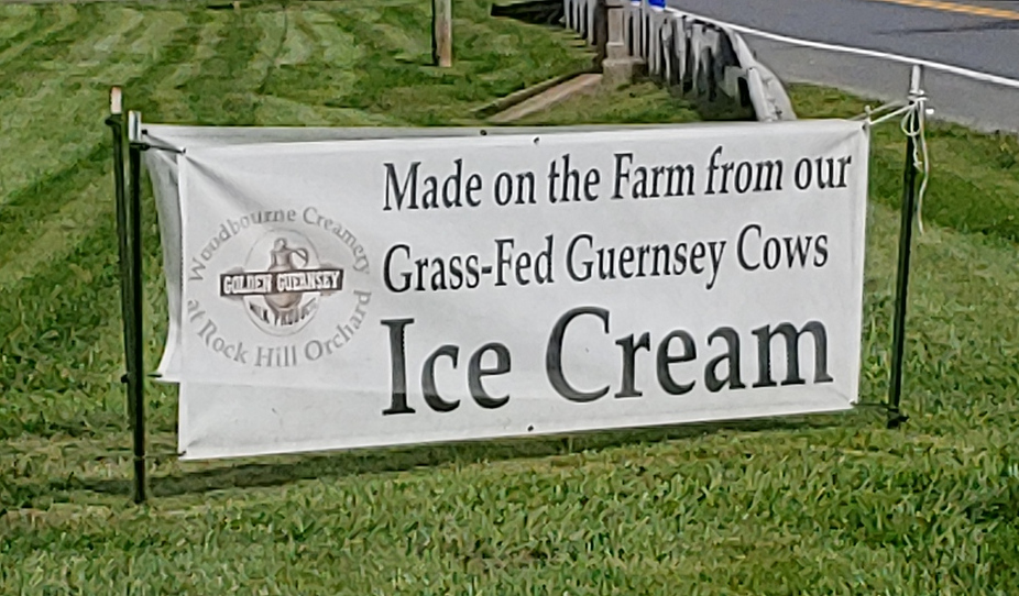 First stop was Woodbourne Creamery/Rock Hill Orchard located inside Rock Hill Orchard in Mt Airy, at the northern tip of Montgomery County. Woodbourne is the creation of the husband and wife team of John and Mary Fendrick, who bought Rock Hill in 2010 and moved their herd of Guernsey cows there. In 2013, they started selling ice cream made with milk from these grass-fed cows. “Cow to Cone” is their motto. As it happens, Mary received ice cream training from Penn State Creamery, of which I recently wrote about. When Woodbourne Creamery opened, it was the first new creamery in the county in 60 years.
