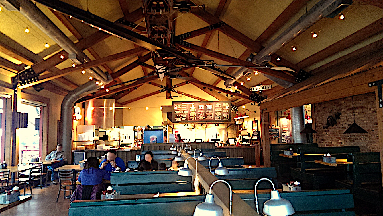 Skeeter’s has a nice, rustic ambiance. Wooden beams and tables provide a barn like atmosphere, but polished enough so you still feel line you are in a restaurant. And the view is spectacular. You can see it from any table as there are wide windows running the length of the side wall. Service is quick and the wait staff is friendly. All in all, it is a phenomenal dining experience.