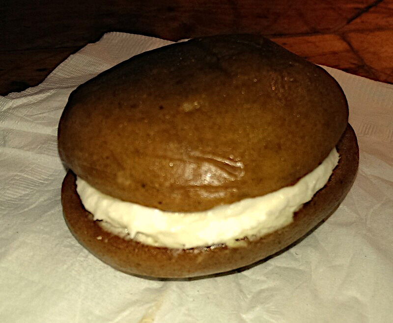 Skeeter’s desserts vary seasonally. On one trip, I had a Pumpkin Whoopie pie. Whoopie pies are a regional dish that I have only seen in Pennsylvania (although Wikipedia indicates that they are found elsewhere). They consist of two soft cake rounds filled with icing. The flavors of both the cake or the icing vary. I love Whoopie pies and always try have some whenever I am in Pennsylvania. There is nothing special to note about Skeeter’s version. It was well made and I did enjoy it.