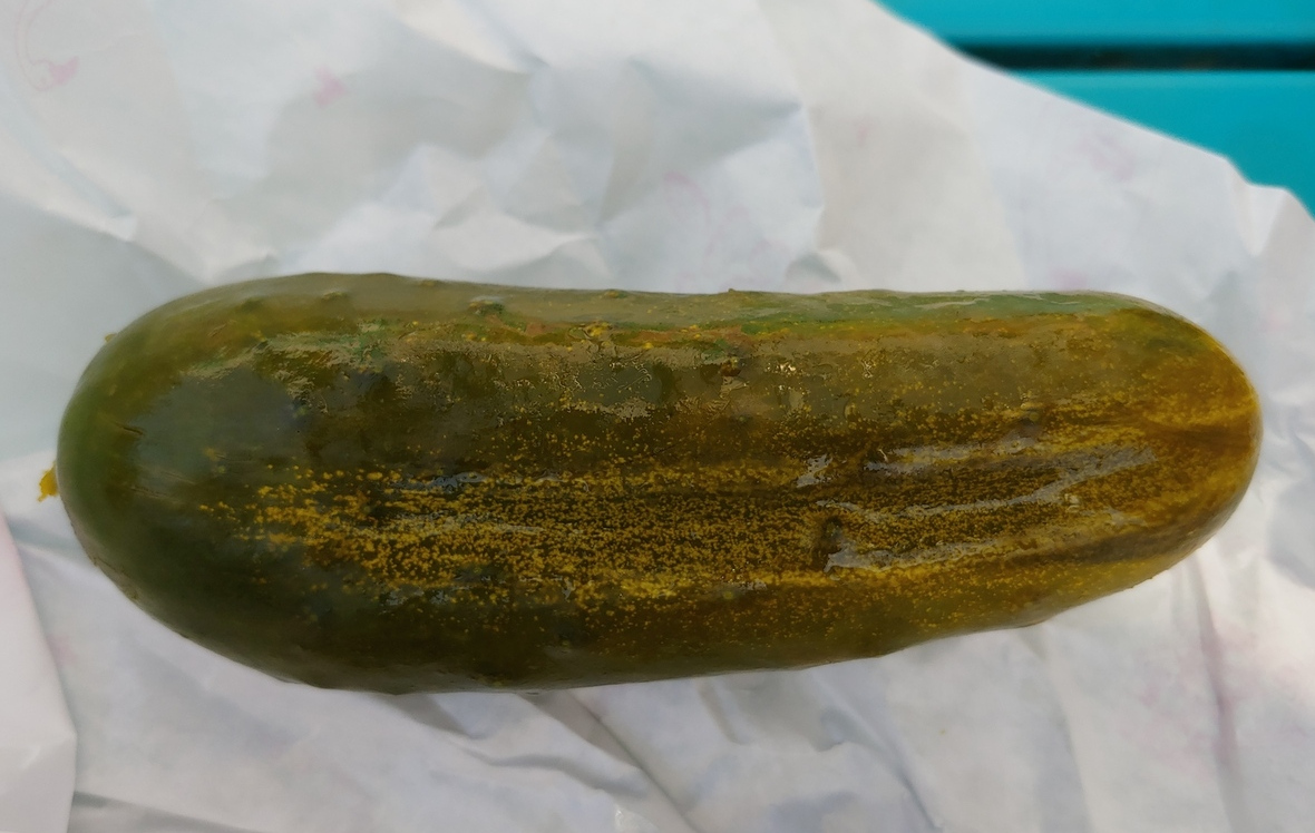 On the day I was there, I went with the bagel sandwich. I chose the Sun City – bacon, eggs, and both American and Cheddar cheese, all on an everything bagel. The bacon was thick and tender, just the way I like it, the cheeses were oozing over the sandwich, and the bagel was dense but soft. All together, it was delicious! For good measure, I had a pickle on the side.