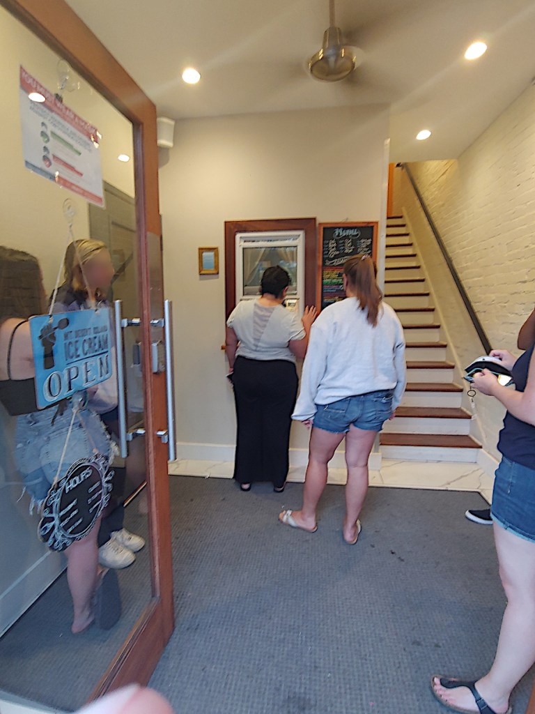 Mt Desert Island a very small place. The waiting line is essentially the outside staircase in front of the building. So don’t let the long lines fool you, as once you get to the door there is very little waiting. And once you place your order, the ice cream comes out quickly. While there can be a little bit of a wait, it is worth it.