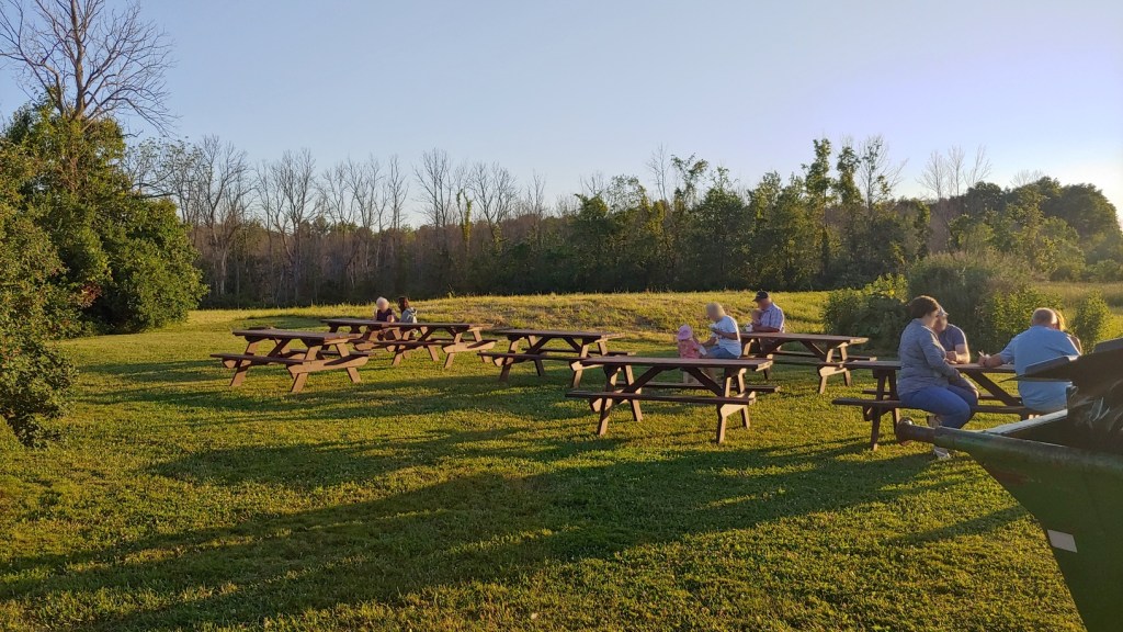 Sprinkles Creamery has plenty of staff, all of whom were courteous and pleasant. The line was short and orders came out quickly. There is also a drive through, which had a steady stream of cars going through it while we were there. Sprinkles has no inside seating, but there is copious outdoor seating on picnic tables right behind the building. Surrounded by fields, the view is spectacular.