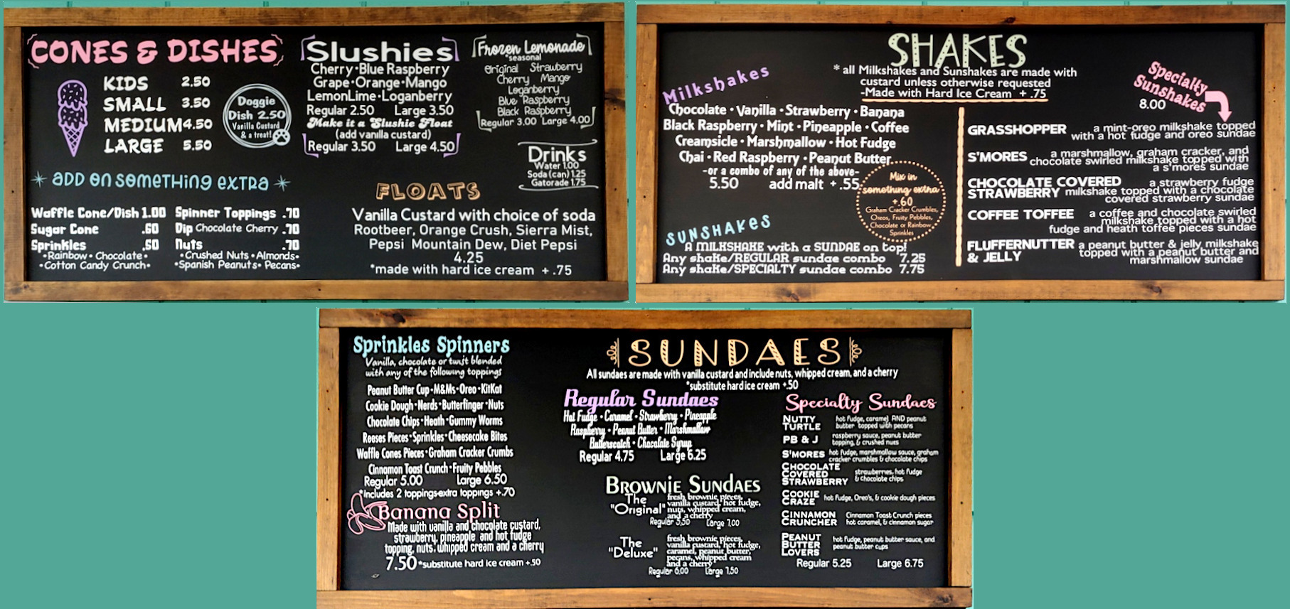 Despite the name, Sprinkles is not a creamery. Hard scoop ice cream is from Perry’s while soft serve is from Upstate Farms. I’ve mentioned Perry’s before, in my Summer is for Ice Cream article. It is a New York based creamery headquartered in Akron and has been around since 1918. Upstate Farms is also local to Western New York; it is a dairy cooperative consisting of over 340 family farms. Their milk is frequently seen in the area. I’m not sure I have seen their ice cream before.