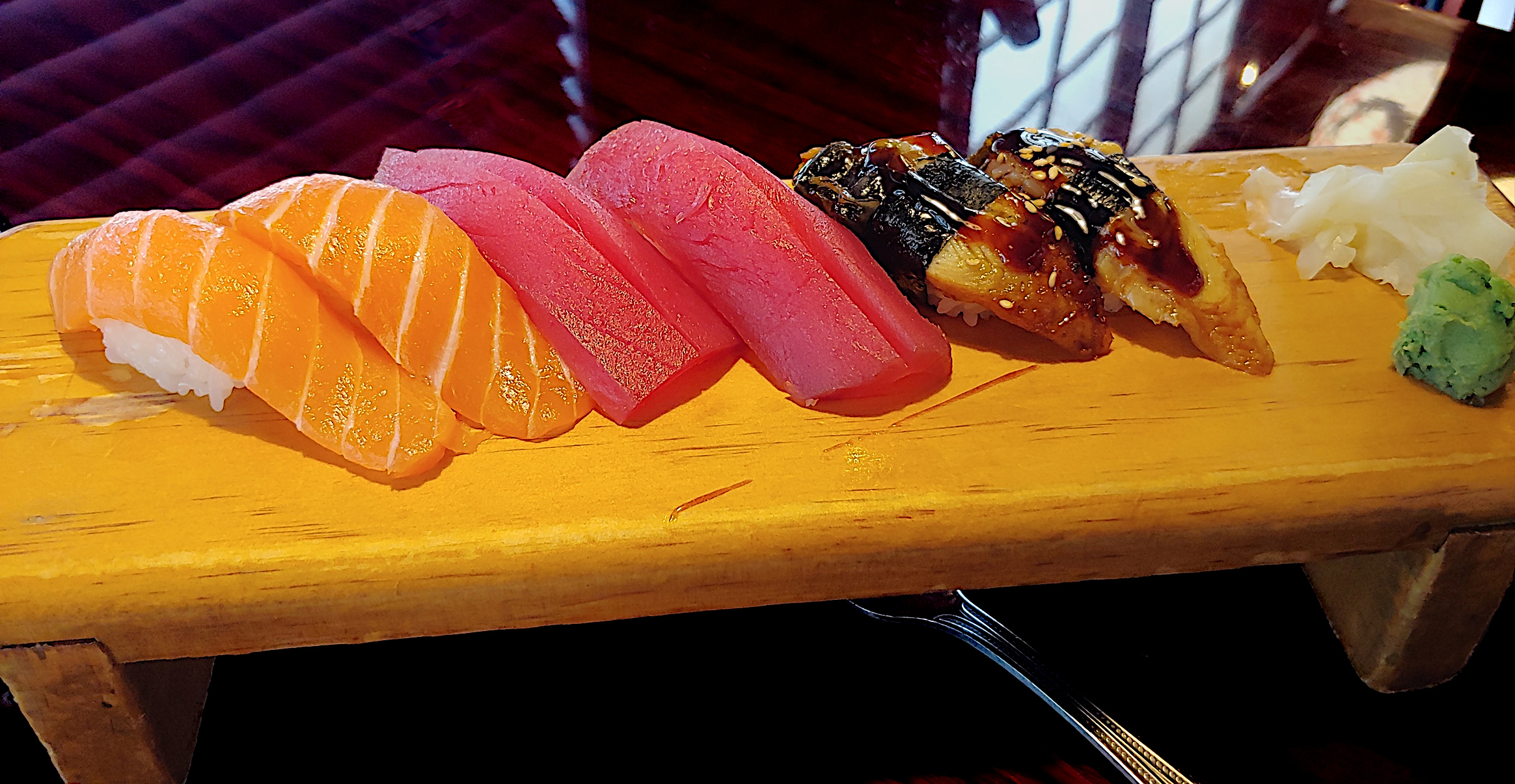 But I was interested in the sushi. Miyako has a large selection of specialty rolls, but I prefer Nigiri sushi. The have all the classics, ordered a la cart. I went with my favorites: Sake (salmon), maguro (fatty tuna), and unagi (grilled eel). You get two with each selection, so I limited myself to 3 kinds. Along with an appetizer, I had plenty of food. With fresh fish and large slices, the sushi is expertly prepared. I was thoroughly pleased.
