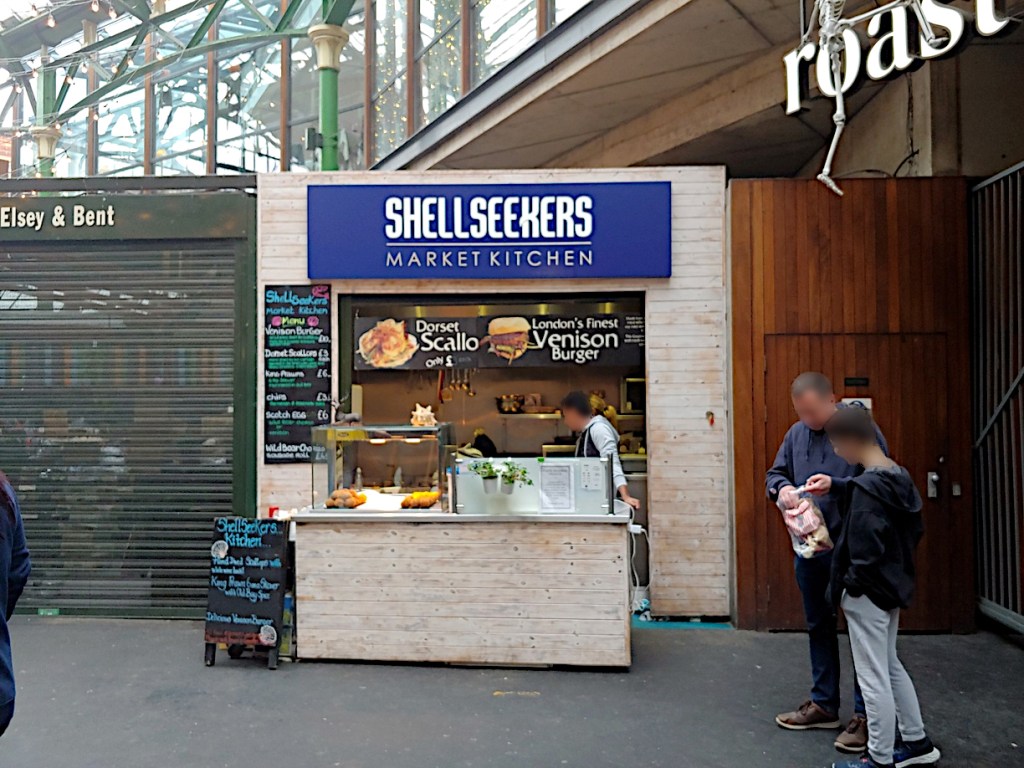 But I did have room to eat a little more. Learning my lesson, I spent quite a bit of time walking around looking at all the booths before ordering more. Despite all that, I settled on the very second booth I saw. A booth called ShellSeekers that claimed to have the finest venison burgers in London.