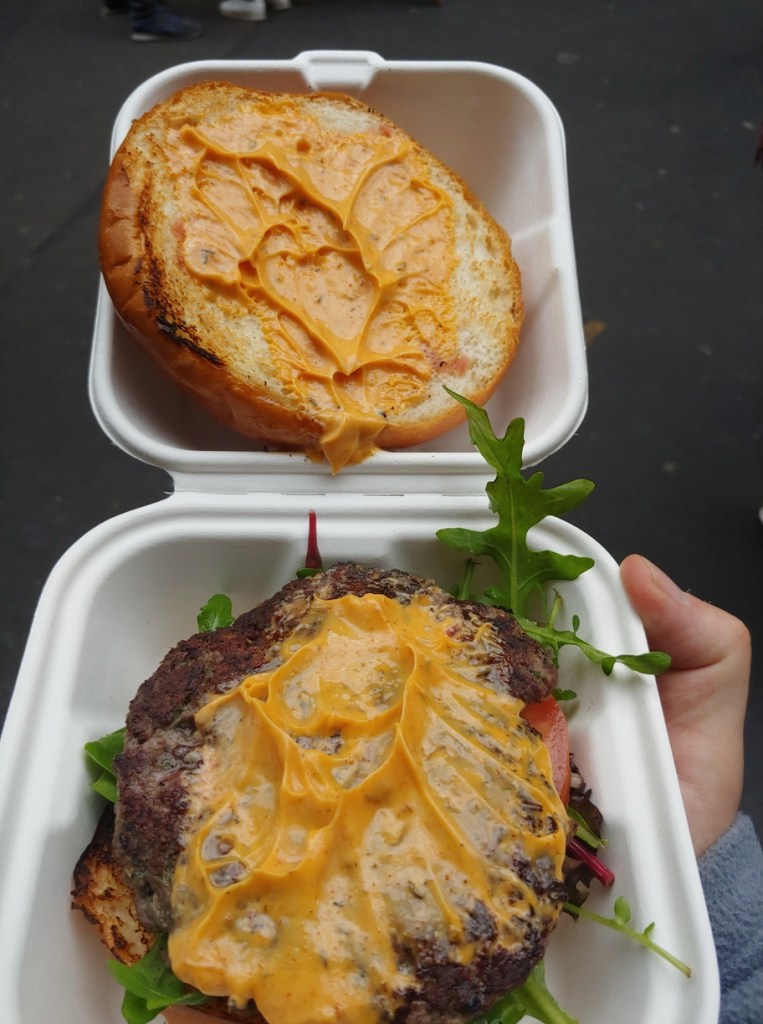 Even after looking at all the other booths, I still wanted to try that burger. Was it the finest in London? I can’t say, as I have not had it at elsewhere. But Shellseekers’ burger was excellent. I am always a bit wary of ordering burgers made from exotic meat, as they tend to be lean and therefore dry. Not so here. Shellseekers is smart enough not to overcook the burger. In fact, it was cooked rare. Perfect for this type of meat!