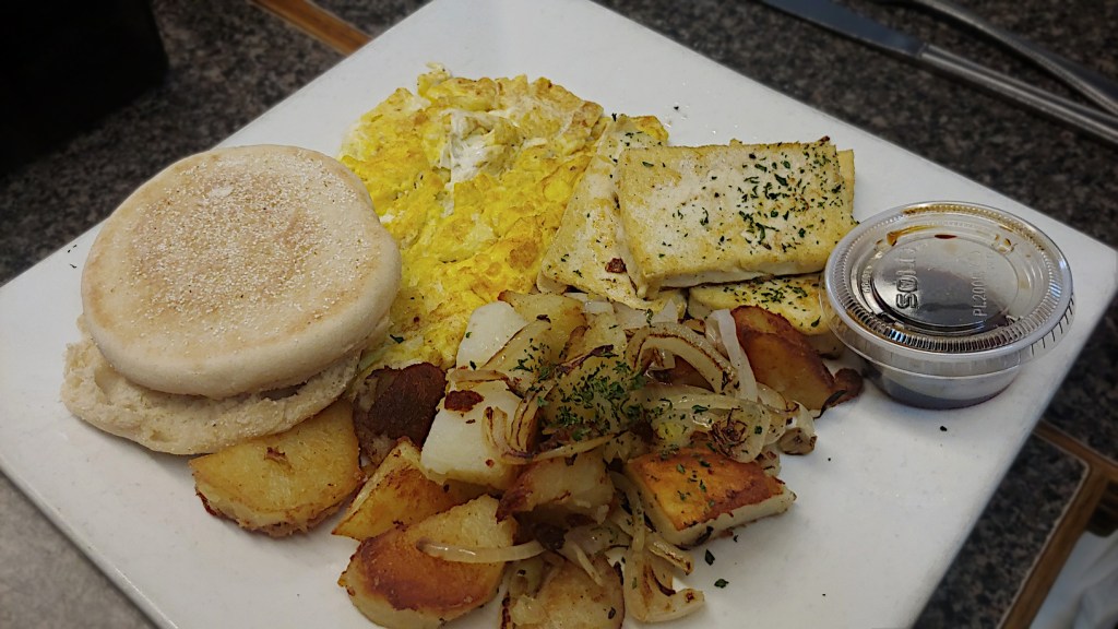 I was glad I was able to go to Mark’s before it closed. It had been quite a while since I had gone there. In fact, the last time I was there was February 2020, just one month before COVID caused shutdowns throughout the United States. Here are some pictures of what we had then, which included a Blueberry Buckwheat Waffle and the Farmer’s Salad.