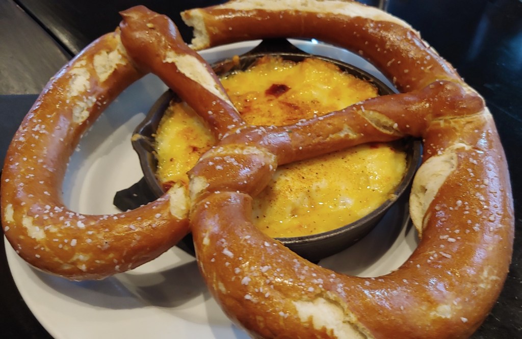 The crab dip came with a Bavarian pretzel. I liked both, but the crab dip was too firm to dip the pretzel in; I had to scoop it out with a knife. The Charcuterie had a decent assortment of cheeses and meats. The cheese selection was the best part; it contained a good mix of hard and soft cheese. It was also served with warm honey, which I loved.