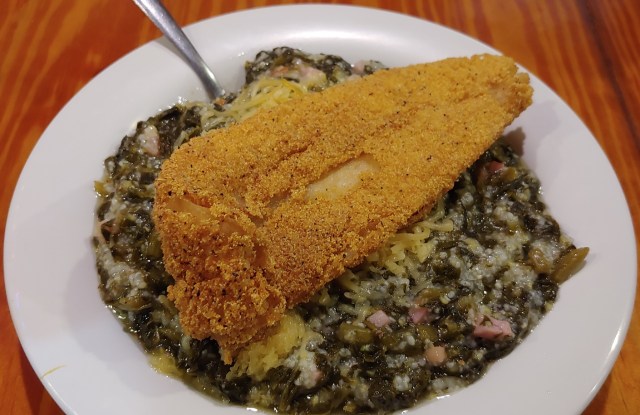 On my first trip there, I had one of the grits recipes: Grits, Greens & Fish. It consists of turnip greens mixed in with grits and topped with a fried fish. It is a heavy dish and a bit more food than I was expecting. While I liked the dish, the greens were a bit much for me. Their tasted dominated. The fish, however, I loved. Freshly fried, it came out piping hot. Crispy on the outside and flaky on the inside, it was perfect.