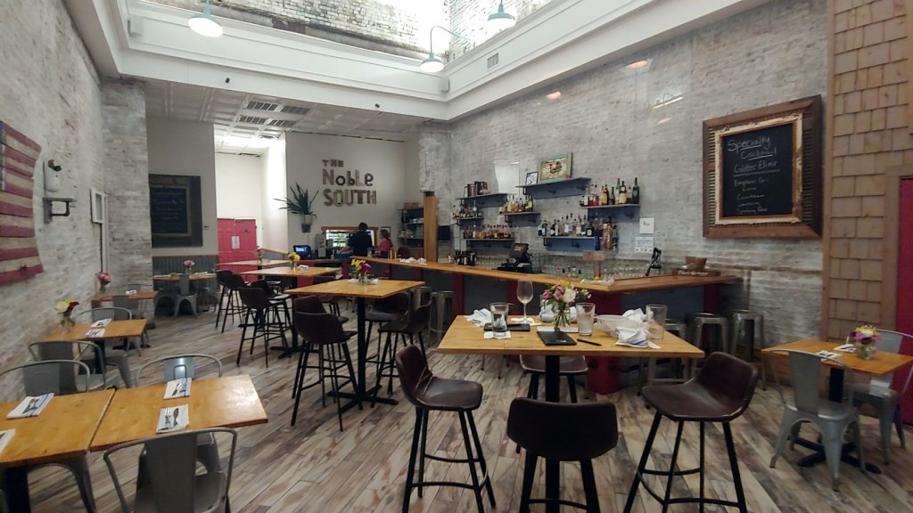 Noble South is another place that is very busy. We did make a reservation earlier in the day and had no issues getting a table. (The picture was taken at the very end of the evening, after everyone else had left.) We were seated right away and were immediately given menus. Our waiter regular stopped by, checking in with us. As everything is made fresh, it took time for our food to come out. All told, we were there about one and a half hours. But it was an enjoyable, leisurely meal.