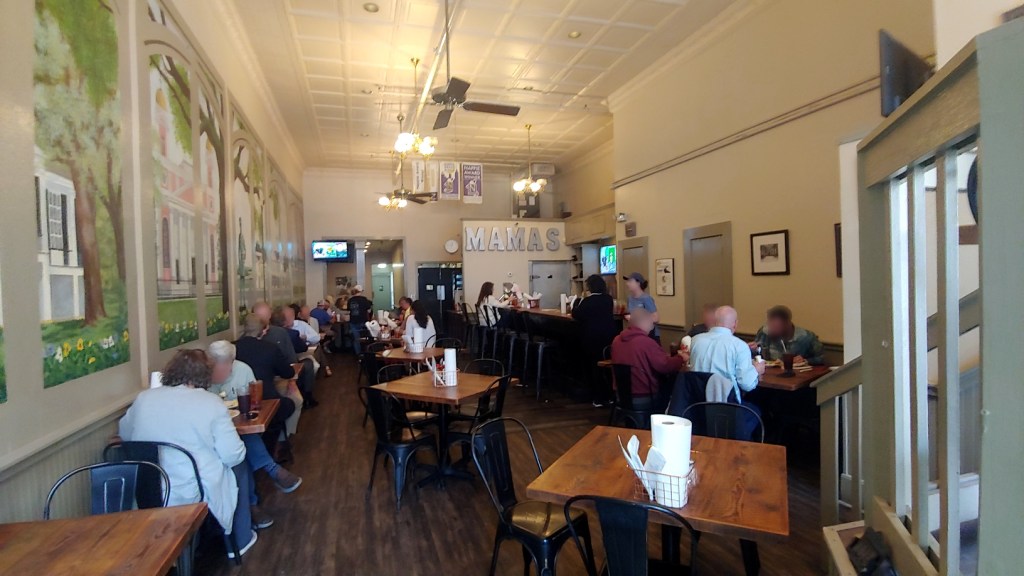 Mama’s has the look and feel of a country kitchen. This is reinforced by the wait staff, who are extremely friendly and welcoming. The place was packed during the lunch hour, so I ended up sitting at the bar. (The place emptied out a bit at the end of the hour.) Despite the crowds, I was served very promptly. The food came out soon after I ordered it. A few days later, I had the good fortune to meet the owner at an event he catered. (One of the items served was the Sweet Pig Cheese – decadent!) Gregarious and friendly, the man is a total foodie. He has dedicated his life to making people happy through good food. By my reckoning, he is succeeding.