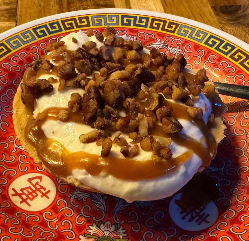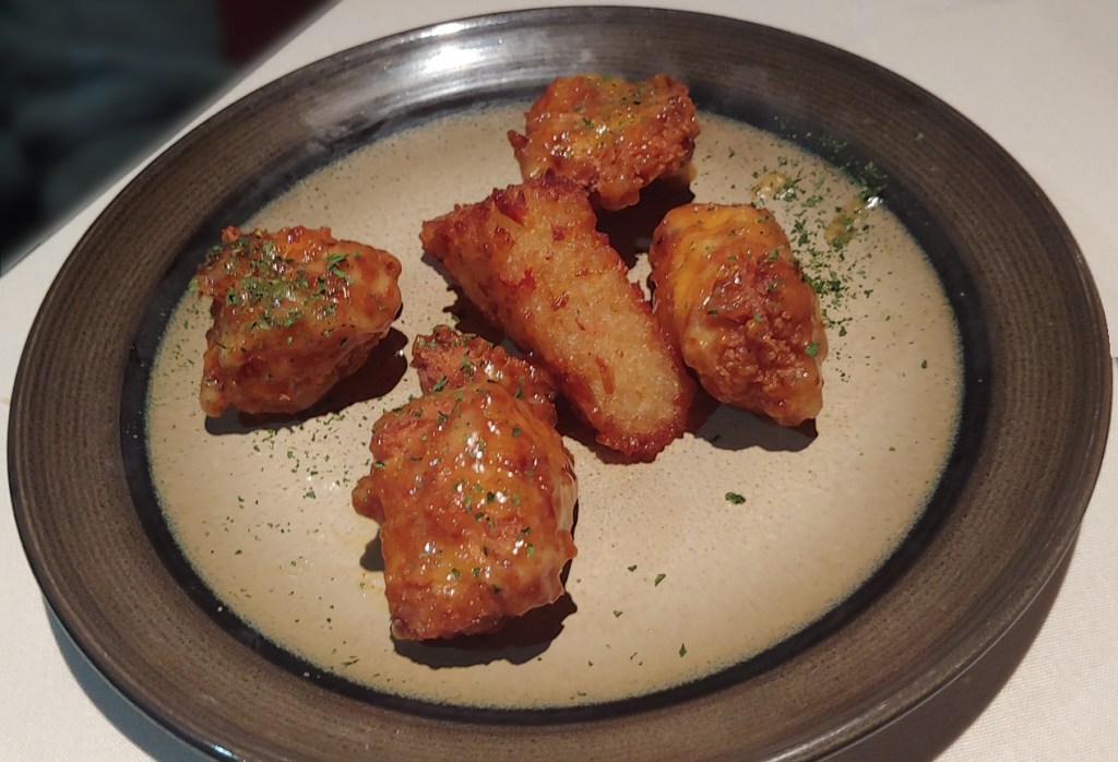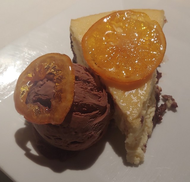 For dessert, she had the Togarashi Cheesecake. This is a cheesecake topped with Miso caramel, whipped cream, and candied peanuts. She remarked that the caramel sauce is very much savory, similar to Salted caramel but less sweet. In the cheesecake, she detected what she eventually decided was onion powder. This gave the dish a deep cheese flavor that she loved. It sounds delightful!