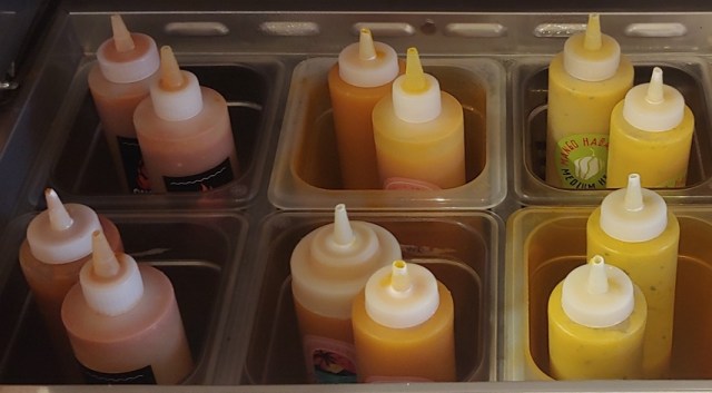 The tacos were excellent. The shrimp is topped with a mildly spicy mango salsa that complimented the fish quite well. One of the unique things about Rooster’s is that they have a hot sauce bar, with various kinds of hot sauces. The bar is at the front of the restaurant and you can either grab a bottle or pour some sauce in a plastic cup. I tried the mango habanero one. It is perfect for fish.