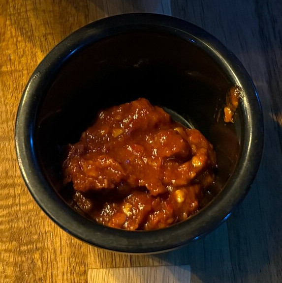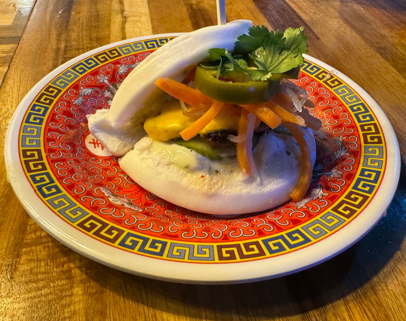 The Hellfire Bomb, made with habanero peppers, is extremely hot. Her second order was the Ban-Mi Smash. It is a burger made with Wagyu beef but in a steamed bun. The toppings include American Cheese, carrots, Daikon, and jalapenos. She said it was excellent, but I’ve forgotten her detailed comments.