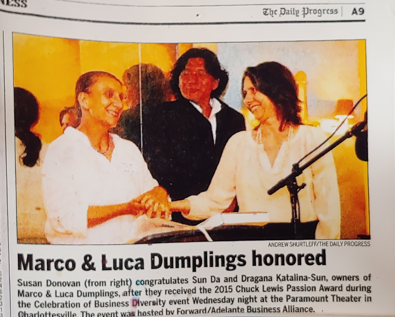 Marco & Luca Dumplings has been a mainstay of Charlottesville since 2001 when it was started by husband and wife team Sun Da and Dragana Katalina-Sun. Their first shop was quite small, but in 2003 Marco & Luca moved to its current location on main street. It quickly gained a reputation for innovative cuisine.